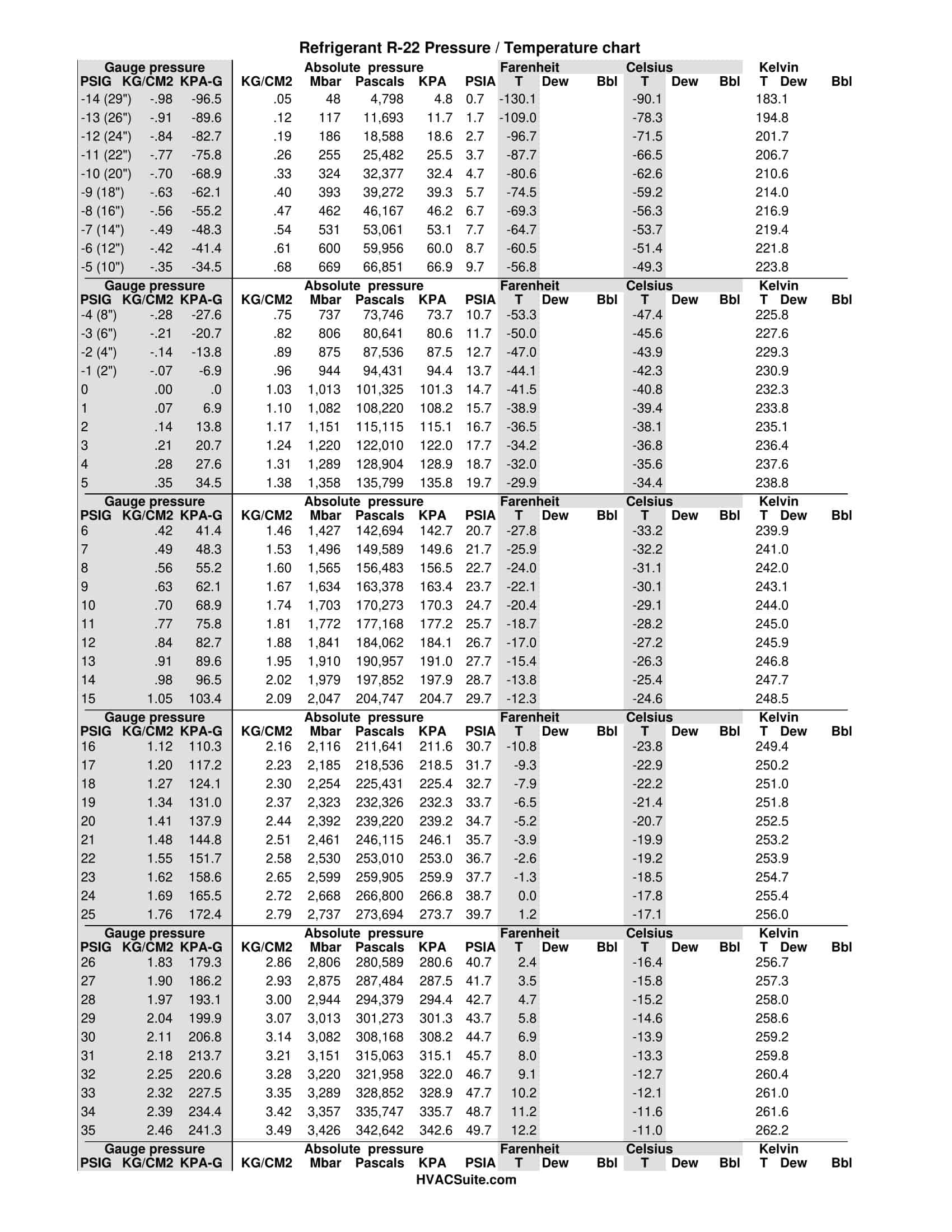 This script determines the gas pressure based on temperature of r22. Pressure for all temperatures of this refrigerant. R22a pt chart | pdf | physical quantities | thermodynamics.